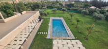 Très belle villa CONTEMPORAINE posée sur 1018 m² de terrain dans une résidence sécurisée, située à env. 15 mn de l'aéroport. Elle se compose au RDC : 1 grand double salon /SAM avec cheminée et 1 coin salon TV possédant de nombreuses baies vitrées apportant de la lumière, 1 très belle cuisine U.S. avec tiroirs et charnières de la marque Blum, 1 grande plaque de cuissons AEG avec hotte encastrée, 2 fours AEG, 2 frigos AEG et 1 plan de travail en Dectone, 1 îlot central composé de 2 chaises hautes, 1 chambre avec SDB, télévision, armoires intégrées et TERRASSE. Au 1er étage : 1 chambre avec SDB, télévision, armoires intégrées, grande terrasse communicante avec 1 chambre d'à côté, 1 chambre avec également des armoires intégrées et SDB, climatisation réversible, 1 master suite avec SDB, armoires intégrées, 1 grand Dressing et 1 autre grande SDE avec double vasque, 1 grande TERRASSE. Au sous-sol : 1 espace billard – bar, 1 fitness avec machines, télévision, fresques murales qui donnent sur 1 cour extérieure, 1 SDB, 1 salle de cinéma de 60 m² aménagée de 2 grands canapés avec poufs, 1 buffet, décoration avec 2 statues géantes et avec 1 écran de 3*2, climatisation réversible, extraction d’air. Egalement : 1 chambre pour la gouvernante avec SDB, télévision, 1 armoire murale, climatisation réversible, 1 buanderie avec 1 machine à laver et 1 machine à sécher AEG, des étagères, 1 congélateur et 1 cave. Divers : 1 beau jardin arboré très bien entretenu, PISCINE chauffée de 10 m x 5 m, 1 salon extérieur devant la PISCINE, 1 grande cheminée extérieure, 1 abri pour 2 voitures. Atouts : résidence sécurisée de 13 villas, vue splendide sur les montagnes de l’Atlas, l’espace ouvert détient un chauffage au sol, le carrelage au sol (hors chambres à coucher) est de 120*120 de chez Pocelanosa... VENDUE ENTIEREMENT MEUBLEE ET EQUIPEE HFA