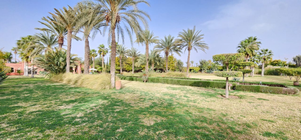 Belle villa à la décoration marocaine dotée d’un magnifique parc arboré qui offre une vue imprenable sur l'Atlas à 30 mn du centre-ville et qui se compose de : 3 salons, 1 salon / SAM, 1 cuisine entièrement équipée, 3 chambres chacune avec SDB + Dressing, 1 Master suite avec SDB + Dressing + TERRASSE et 1 grand patio intérieur. Divers : PISCINE extérieure, 1 salle de sport, 1 court de tennis, salons extérieurs, SAM extérieure, arrosage par aspersion, volets électriques, buanderie, parking privé couvert, 1 puits (profondeur 95 m), arrosage automatique... HFA