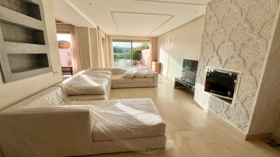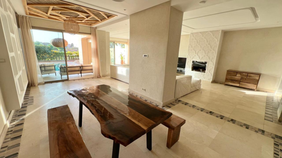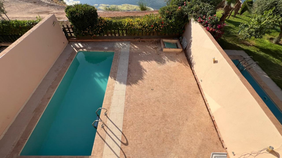 Belle villa RÉNOVÉE, orientée Sud-Ouest avec vue entièrement dégagée composée de : 1 grand salon/ SAM donnant sur TERRASSE et PISCINE privative, 1 cuisine entièrement équipée, 1 wc invités, 3 chambres dont 1 master bedroom avec Dressing + SDB + TERRASSE privative, 1 autre SDE, garage double...Entièrement climatisé, double vitrage, résidence extrêmement bien sécurisée. HFA