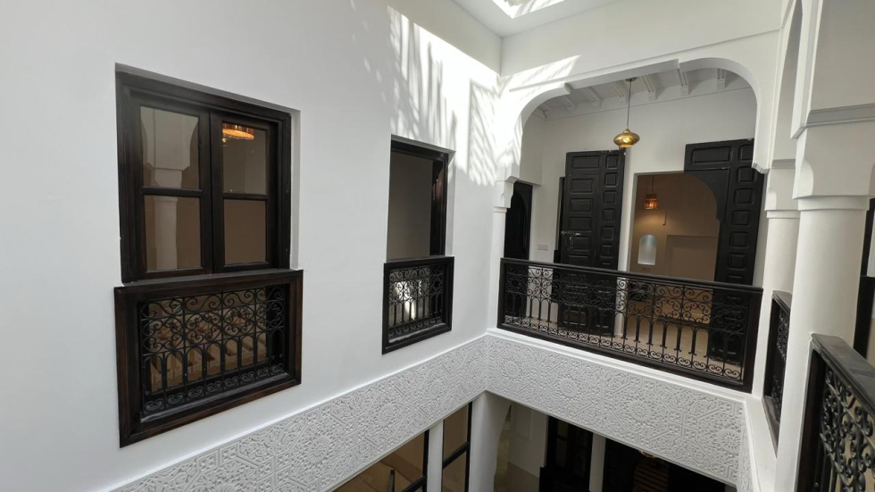 Situé à 7 min à pied de la place Jemaa El Fna, dans l'un des meilleurs quartiers de la Médina, vous pourrez découvrir ce riad très bien décoré et aménagé avec beaucoup de goût qui se compose au RDC : 1 hall ouvrant sur 1 patio avec bassin, 1 salon avec cheminée, 1 cuisine, 1 chambre avec SDE, 1 bhou et 1 wc. Au 1er étage : 3 chambres + 3 SDE attenantes. Toit : 1 cuisine d'été, 1 chambre avec SDE, 1 jacuzzi et 2 TERRASSES. Inconvénient : vous ne l'avez pas encore vu !... HFA