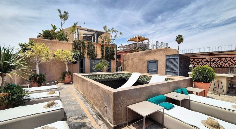 SUPERBE riad en exploitation depuis 6 ans et comprenant au RDC : 2 chambres avec 2 SDE attenantes, 1 hall ouvrant sur 1 beau patio avec bassin, 1 bhou, 1 cuisine moderne entièrement équipée, 1 wc, 1 buanderie et 1 hammam. Au 1er étage : 3 chambres/ suites + 3 SDE attenantes et 1 salon avec cheminée (possibilité d'une grande chambre). Toit : TERRASSE équipée de 2 pergolas et solarium. HFA