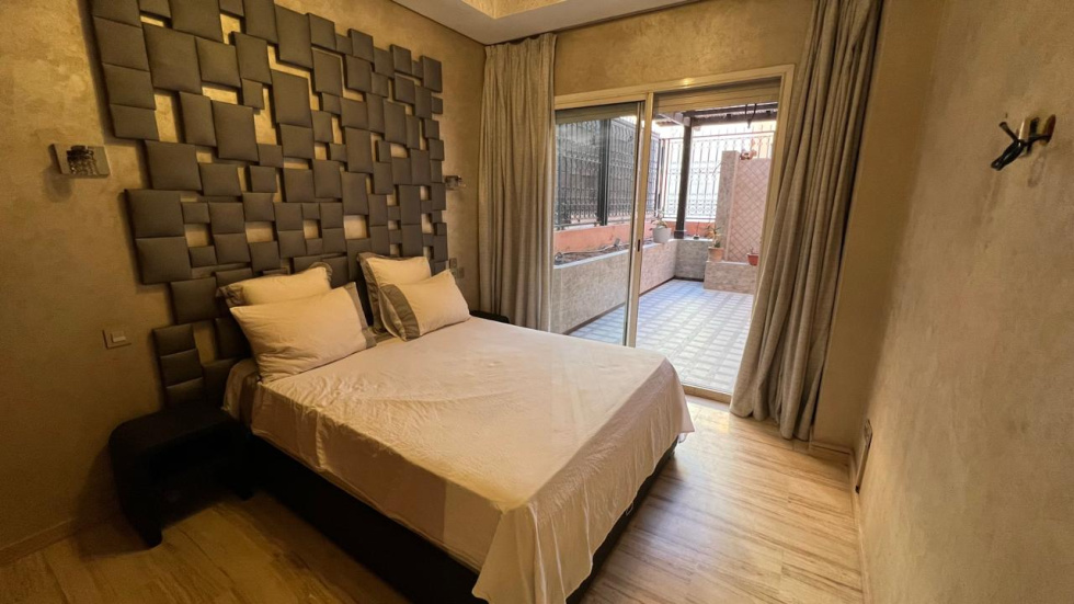 Meublé avec élégance et raffinement, ce très bel appartement au 1er étage, a tout pour vous plaire : 1 hall ouvrant sur 1 salon/ SAM avec cheminée donnant sur TERRASSE couverte, 1 cuisine équipée (hotte, plaque, four, lave-vaisselle, lave-linge), 2 chambres avec placards dont 1 parentale avec SDB attenante, 1 SDE (douche) et 1 parking titré.