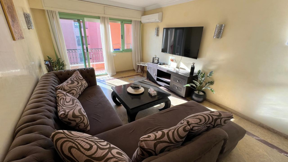 Ce bel appartement, situé dans la rue des Jardins Majorelle et du musée Yves Saint Laurent, comprend : 1 hall ouvrant sur 1 salon/ SAM donnant sur TERRASSE, 1 cuisine équipée (hotte, plaque, four, réfrigérateur), 1 buanderie, 2 chambres avec placards dont 1 parentale avec SDB (baignoire) attenante, 1 autre SDE (douche), parking et box titrés... HFA