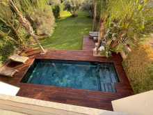 Dans magnifique domaine golfique et sécurisé, villa NEUVE d'environ 744 m² couvert (sur 3 niveaux) posée sur 966 m² de terrain. -Entre-sol : 1 boite de nuit de + de 150 m² avec bar, billard et home cinéma, 1 spa avec sauna, 1 salle de sport, 1 hammam, 2 chambres et 1 SDE. -Au RDC : 1 grand et lumineux salon avec vue PISCINE + TERRASSE, 1 SAM / cuisine U.S avec plan central, 1 chambre avec SDB. -Au 1er étage : 4 chambres et suite, 3 SDB et TERRASSE.